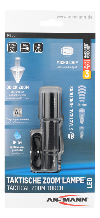 Professionelle Taschenlampe mit stufenloser Fokussierung