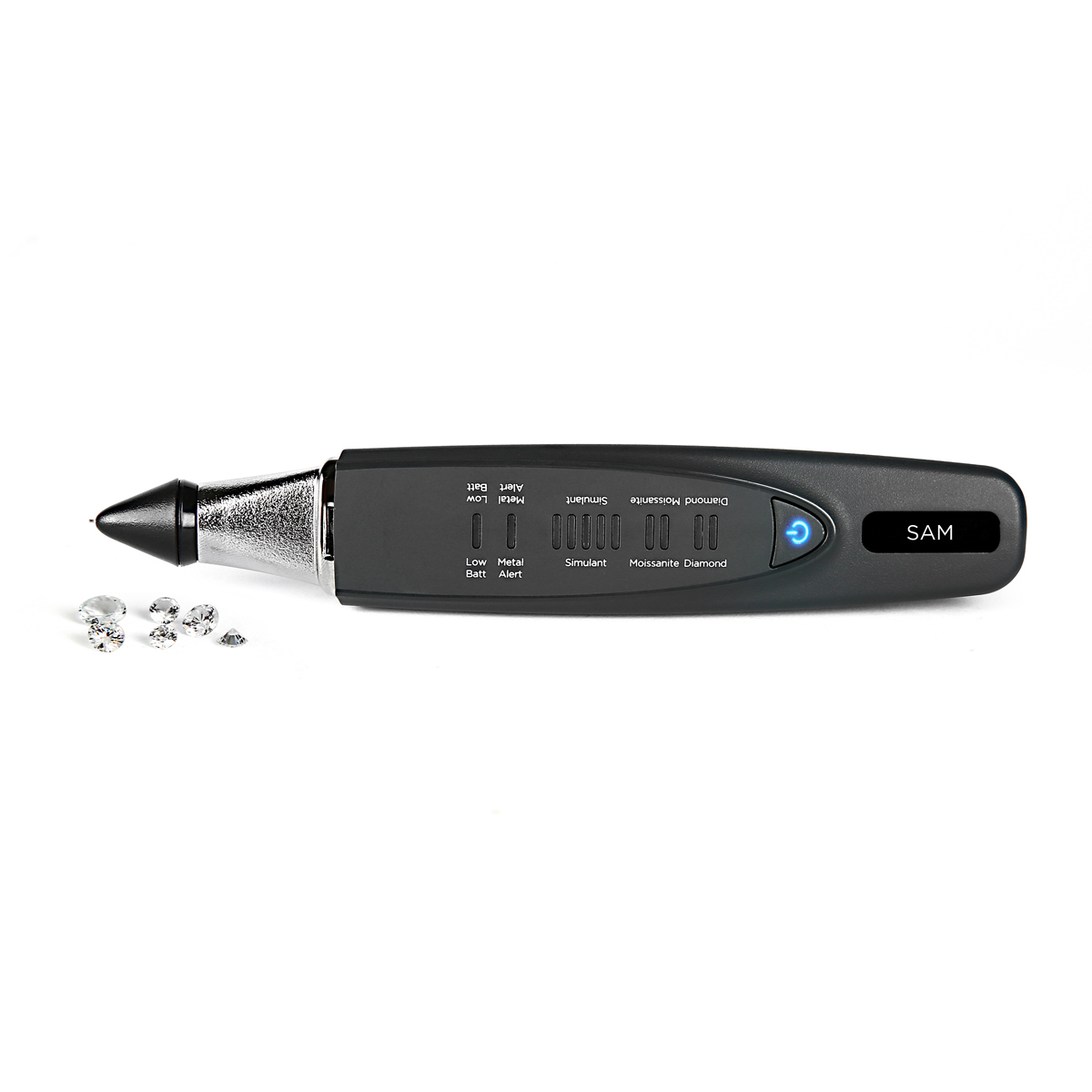 SAM ist der neueste technologische Fortschritt bei tragbaren Diamant- und Moissanit-Testern von Presidium, der die Echtheit farbloser Diamanten mit einer Größe von nur 0,01 Karat zuverlässig und genau im Vergleich zu einem breiteren Spektrum von Moissaniten aus verschiedenen Ländern und anderen Diamantsimulanzien durch eine höhere thermische Auflösung überprüft und elektrische Leitfähigkeit. Mit einem eleganten, ergonomischen Griff aus gebürstetem Chrom und einem dynamischen Mikro-LED-Display gewährleistet SAM eine einfache Bedienbarkeit und eine deutlich klare Ergebnisanzeige beim Testen.